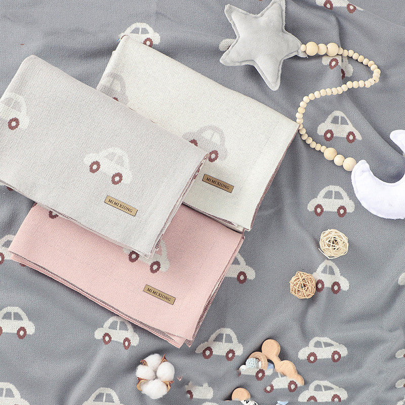 Keep your baby warm and cozy with this adorable car print knitted baby blanket. Crafted from 100% cotton, it's gentle on your baby's delicate skin and perfect for cooler weather. Plus, the cute print is sure to delight your little one.