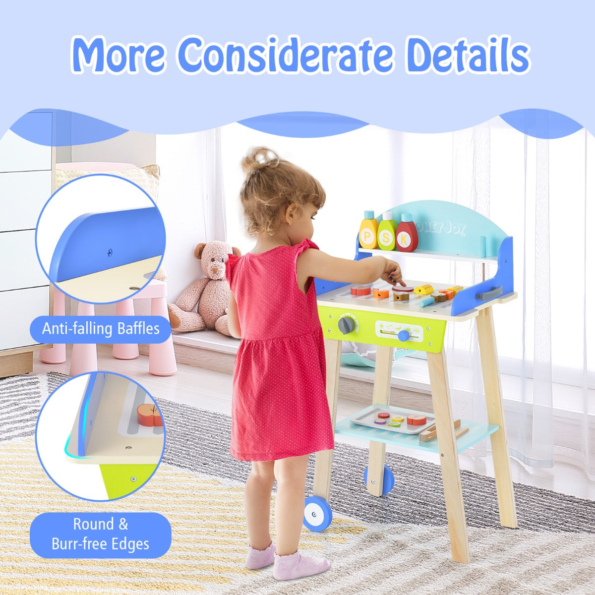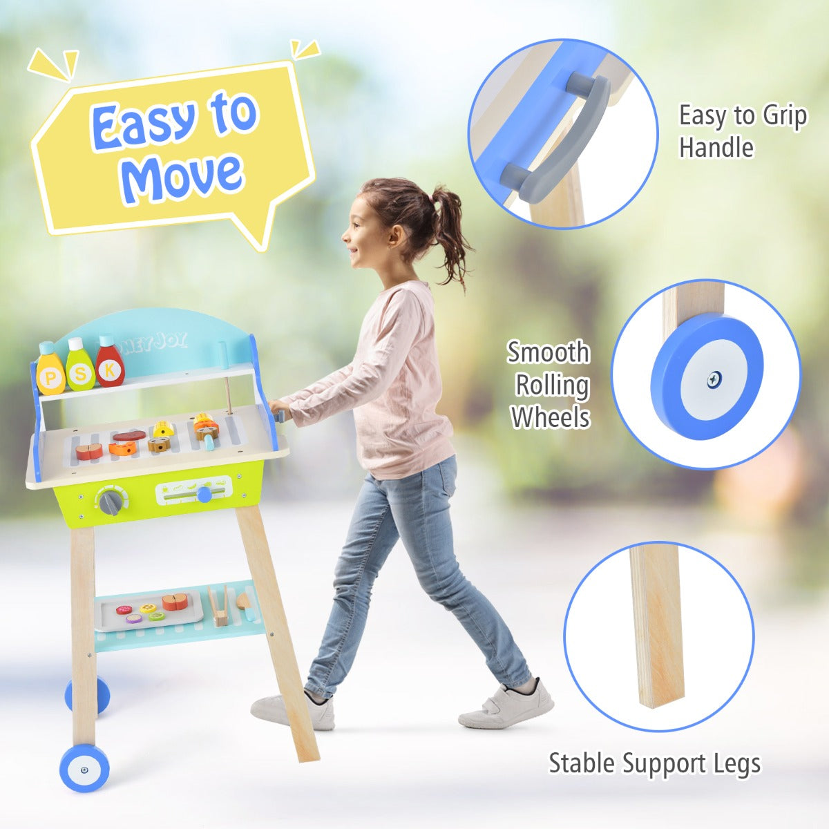 Kid's Pretend Wooden BBQ Play Set with Grilling Tools