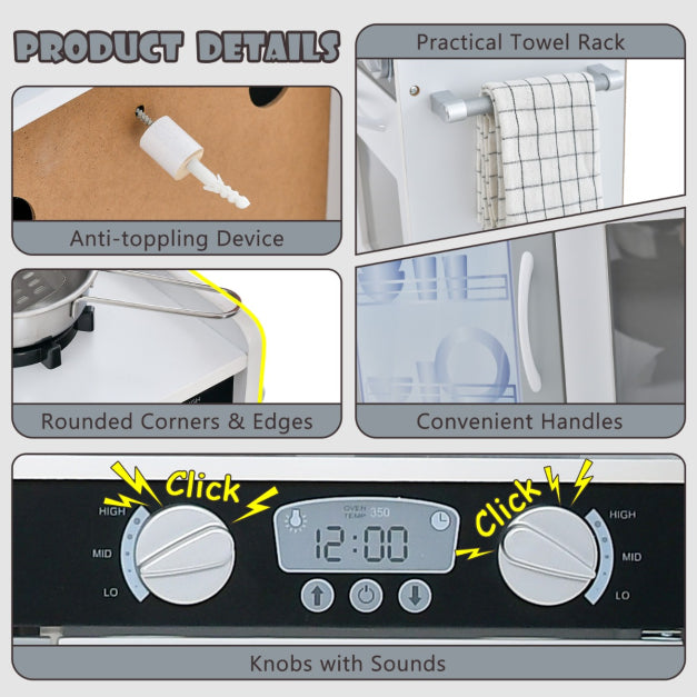 Selected Material and Safe Design: Crafted from high-quality, BPA-free materials, the Richmond Pretend Kitchen ensures a safe and nurturing environment for your child's growth. Rounded corners and edges are gentle on delicate skin, and the included anti-toppling device adds an extra layer of security.