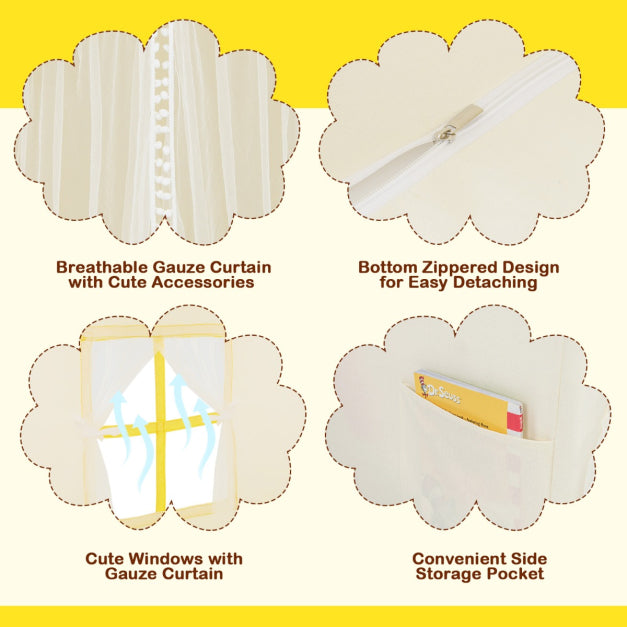Introducing our "Twinkle Castle Large Kids' Play House Teepee," a magical haven for your little ones to explore their imagination. This spacious play tent comes with a washable cotton mat and enchanting star lights, creating an immersive and cozy space for endless playtime adventures. Crafted for comfort and durability, the teepee offers a delightful escape where kids can dream, play, and learn. The washable cotton mat ensures easy maintenance, and the star lights add a whimsical touch to the play area. Transform any room into a stellar kingdom with our Twinkle Castle, providing an ideal environment for kids to engage in imaginative play. Let their creativity soar as they embark on exciting journeys within the magical confines of this large playhouse teepee. Order now and make playtime a magical experience for your little ones!
