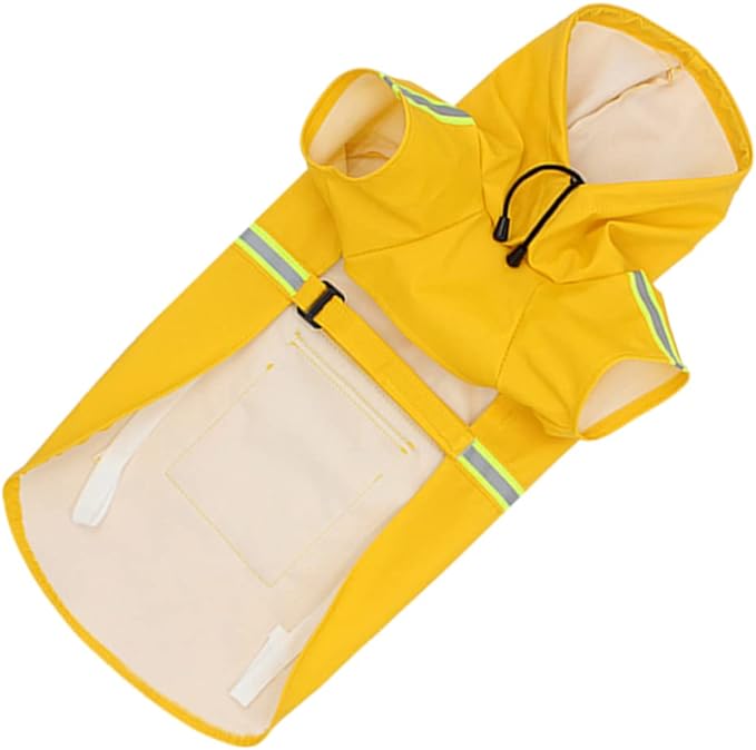 Introducing our stylish and practical Doggy Raincoat—a must-have accessory to keep your furry friend dry and fashionable during wet weather! Crafted from high-quality PU material, this raincoat is designed to provide superior protection against rain while ensuring comfort and flexibility for your pet.